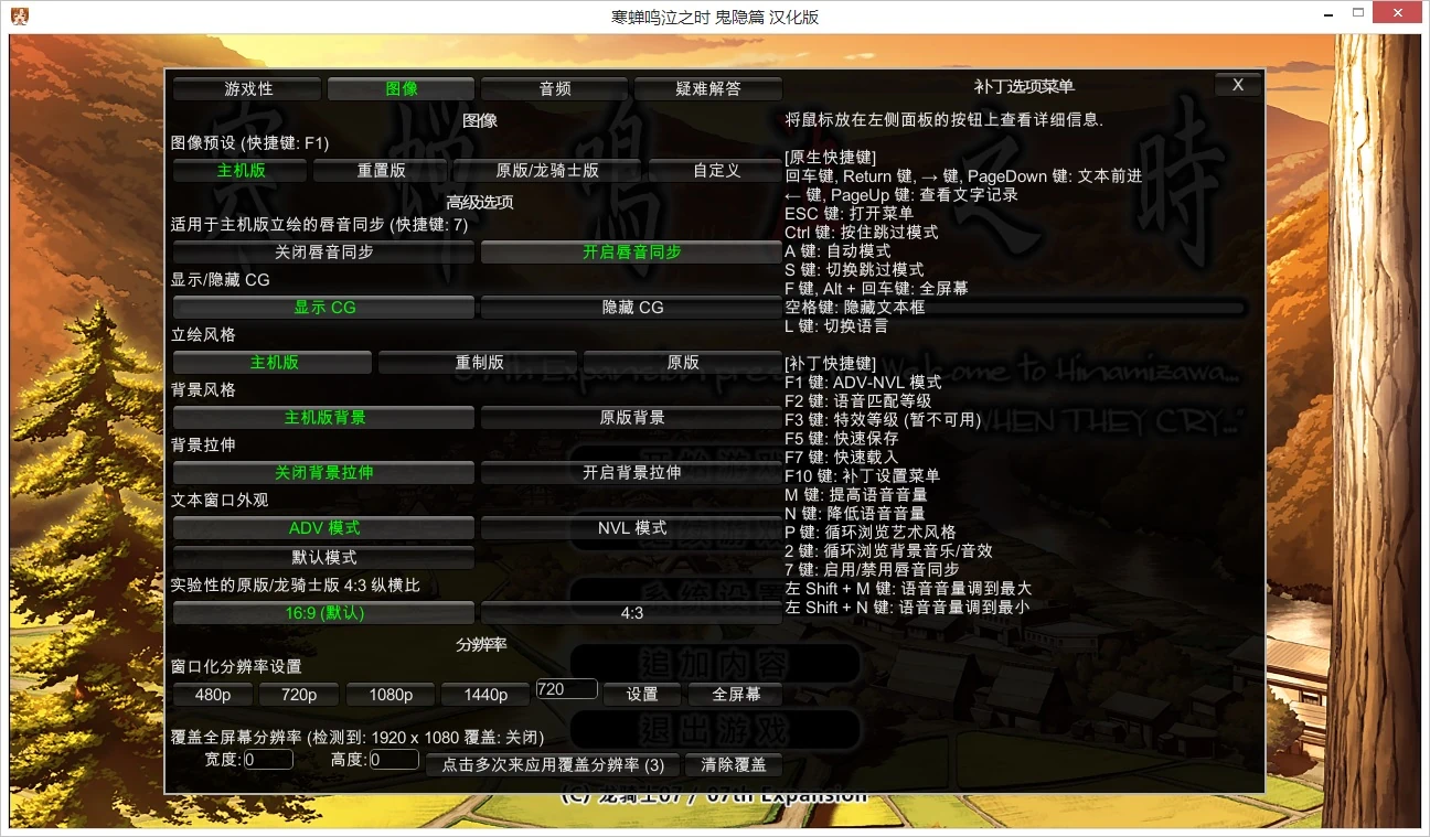补丁菜单和 F2 键可设置语音匹配等级,从 PC 版 (0,最少删改) 到主机版 (5,最多删改)