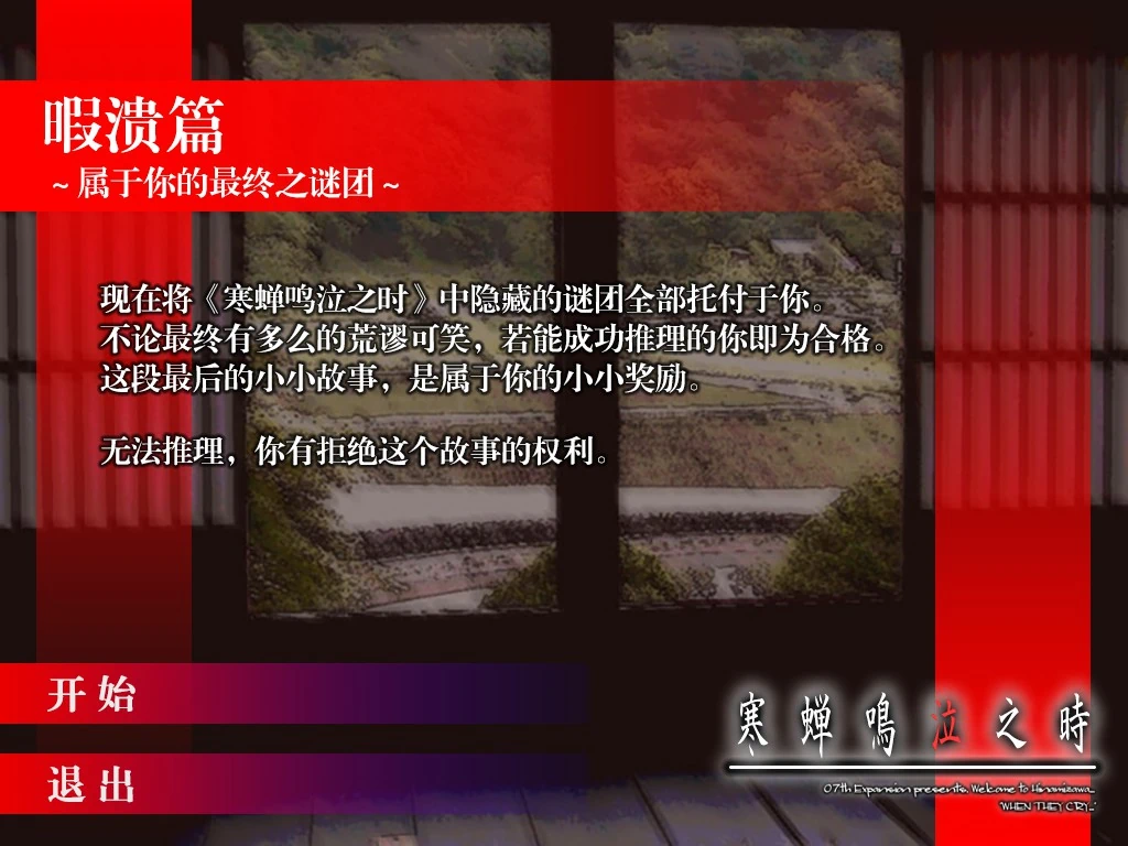 《寒蝉鸣泣之时:暇溃篇》简体中文汉化补丁 Ver 1.1